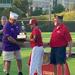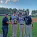 Brent Tremml and a couple of players accept the North Division Trophy from Dennis Cini